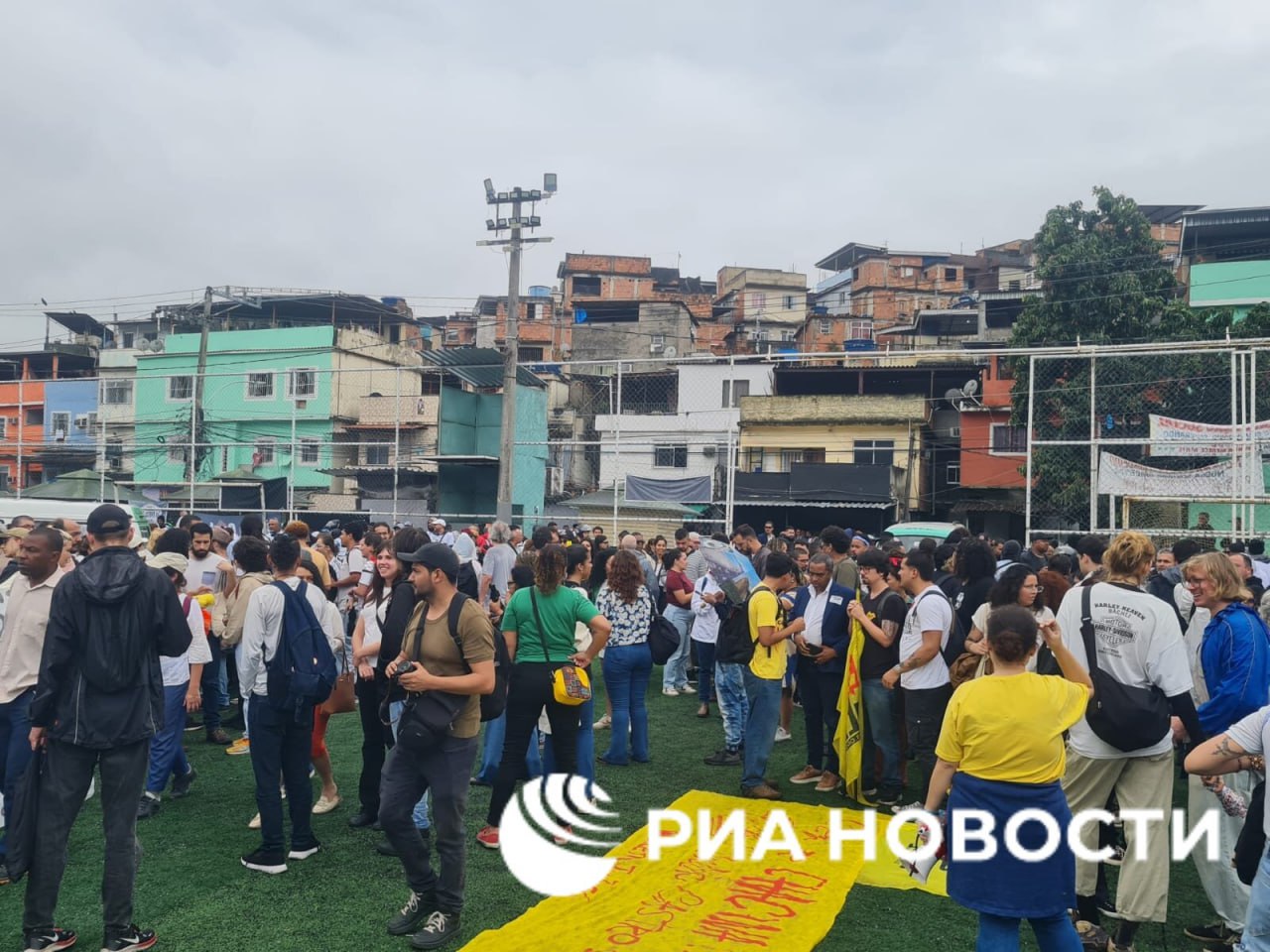 Акция началась на футбольном поле одной из фавел, ставшей местом недавнего рейда. Здесь собрались местные жители, активисты и политики, чтобы выразить своё решительное несогласие с политикой безопасности, проводимой губернатором штата Клаудиу Кастро. Организаторы митинга призвали участников прийти в белых футболках, символизирующих мирные намерения.