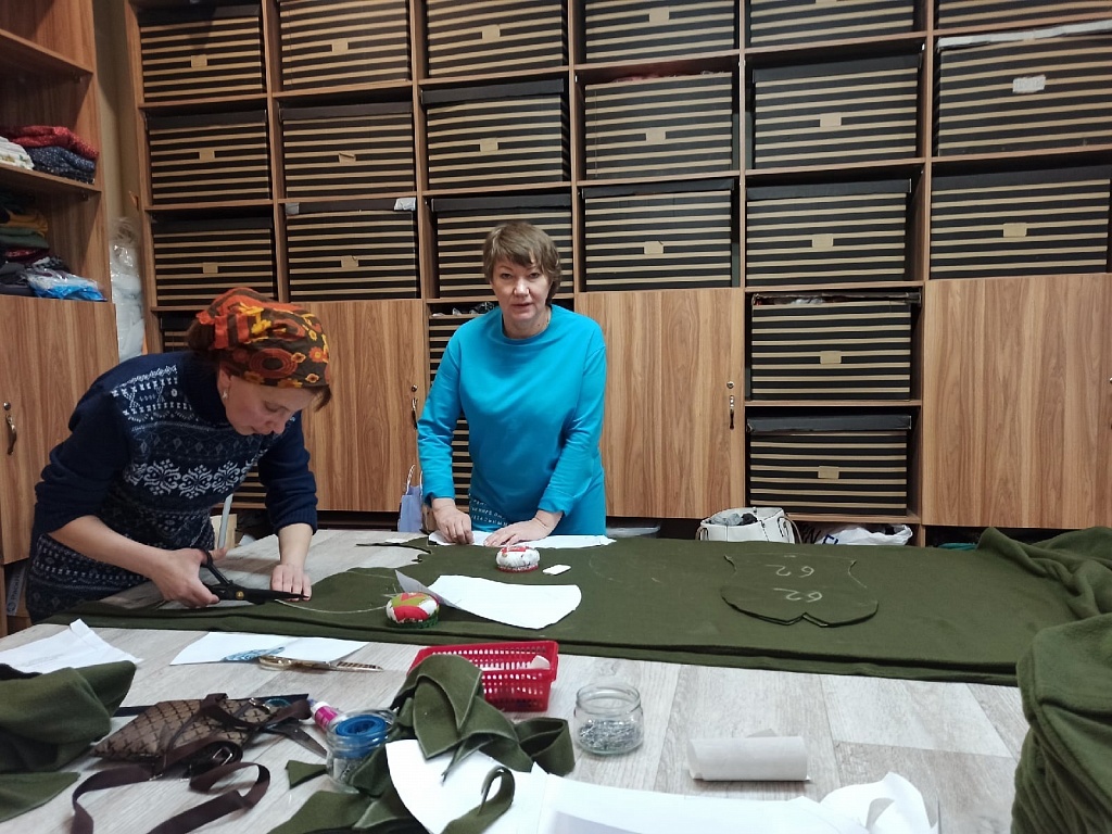 Мастерицы-швеи из Челябинского храма Сергия Радонежского по собственной инициативе и велению души изготавливают элементы военной экипировки. Им помогают прихожанки – вместе женщины шьют подшлемники, термобельё, вяжут для бойцов шерстяные носки и варежки.