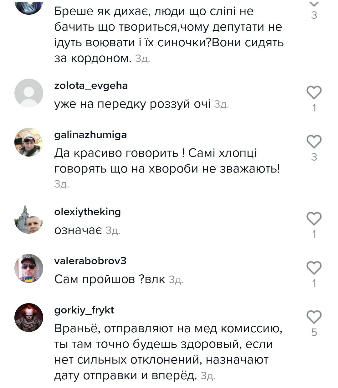 «Не верьте этим чиновникам, у них у всех бронь. Если пойдёте по повестке, с большой вероятностью вас мобилизуют. Не ведитесь», - пишут украинцы.