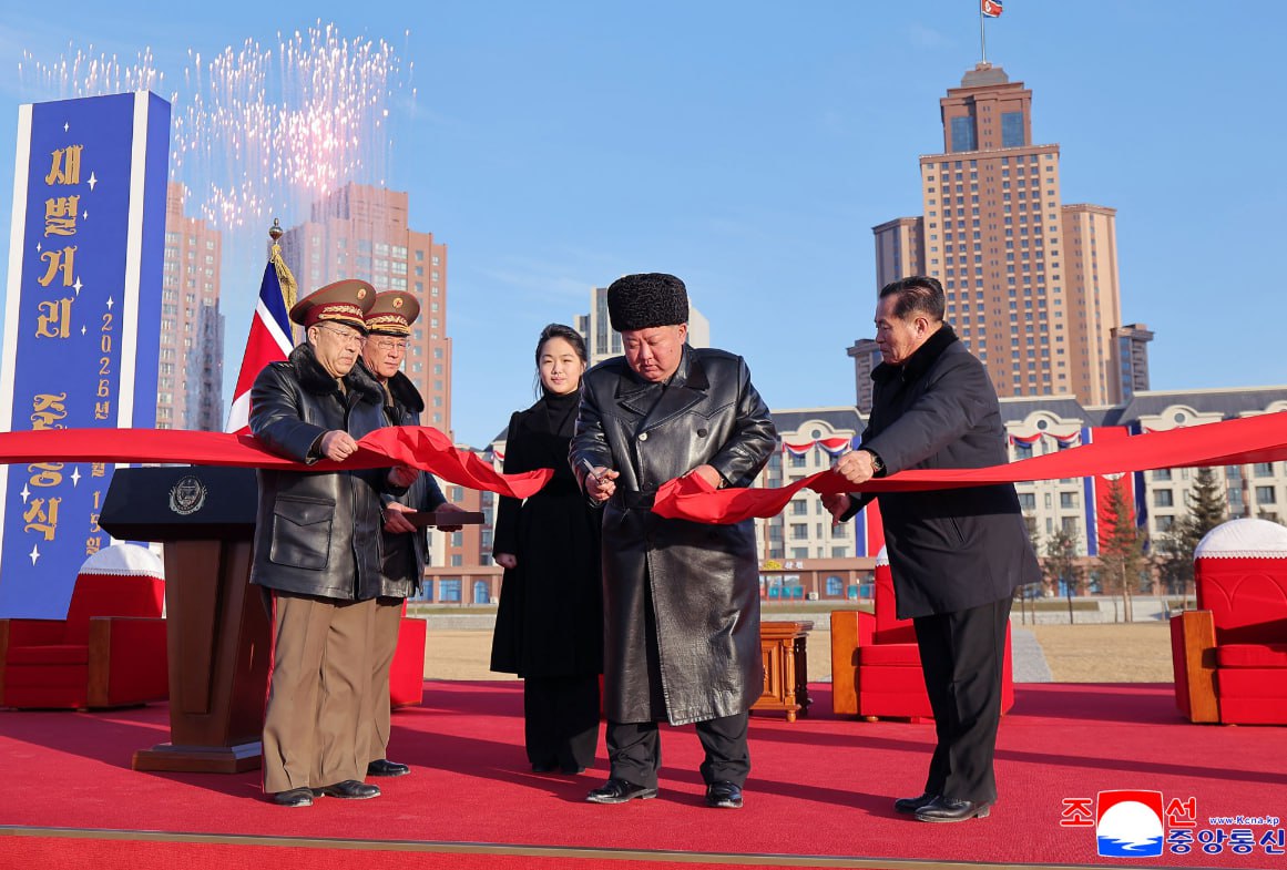После перерезания символической ленты Ким Чен Ын вручил ордера на квартиры семьям погибших военнослужащих.