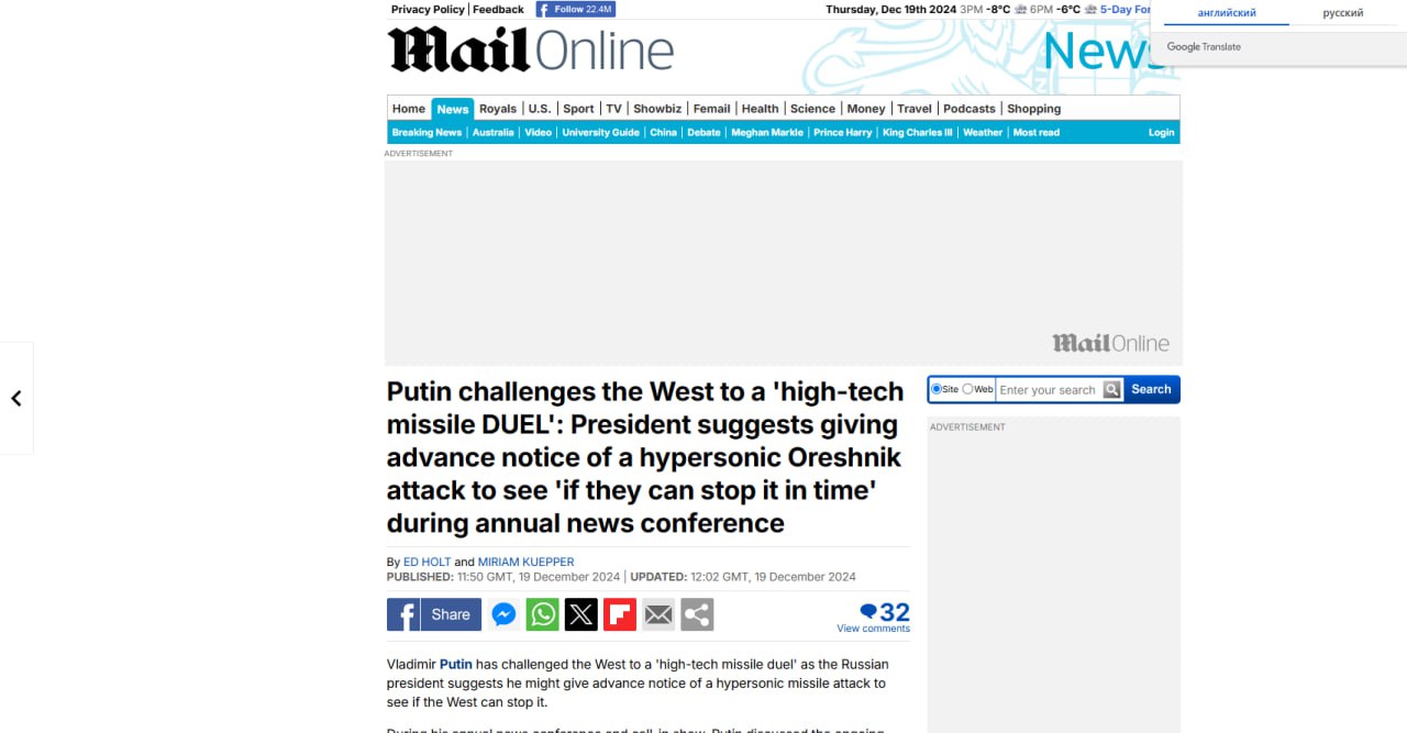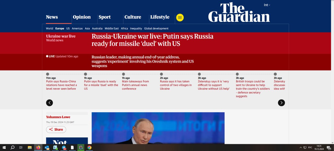 Предложение Владимира Путина о проведении "высокотехнологичной дуэли" с использованием российской ракеты "Орешник", вызвало широкий резонанс в зарубежных СМИ. Различные издания по-разному интерпретировали это заявление.