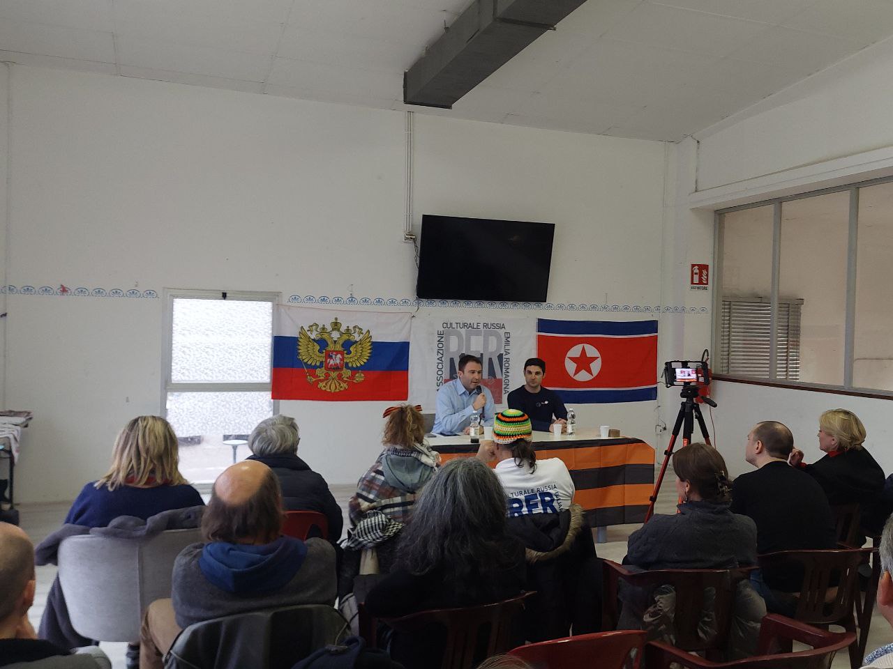 Чем больше ЕС «демонизирует» Россию и Северную Корею, тем подробнее итальянцам хочется их изучать. Организатором конференции выступила Культурная ассоциация «Россия — Эмилия-Романья». Одним из главных спикеров на ней был Жан-Клод Мартини, официальный делегат Ассоциации дружбы с Кореей, который рассказал про корейскую идеологию «чучхе» (принцип опоры на собственные силы и самобытность) как средство борьбы против империализма. Он объяснил, что «идея чучхе, которая сегодня является доктриной северокорейского государства, зародилась во время борьбы против японской оккупации в 1930-е годы. В последующие десятилетия она получила более органичное развитие. В ней рассматривается человек не как отдельная личность, а как социальное существо, в коллективном измерении, который является творцом всего. В идею включены независимость, творчество и совесть».