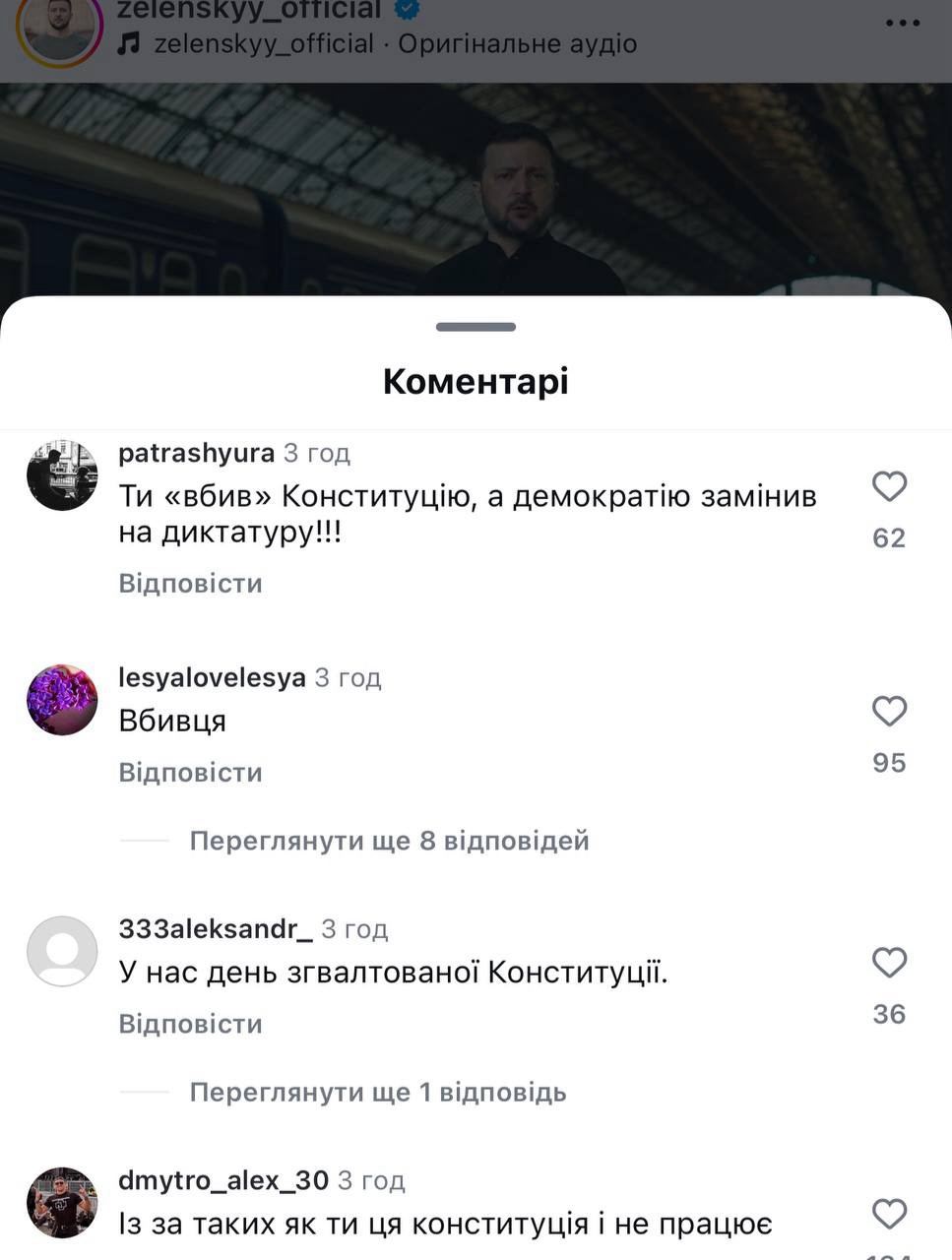 Президент Украины Владимир Зеленский поздравил жителей страны с Днём Конституции, но, забыв закрыть комментарии, он получил бурную реакцию населения на поздравление.