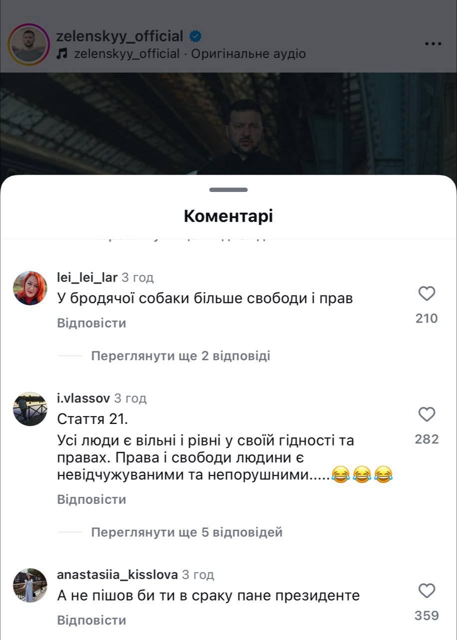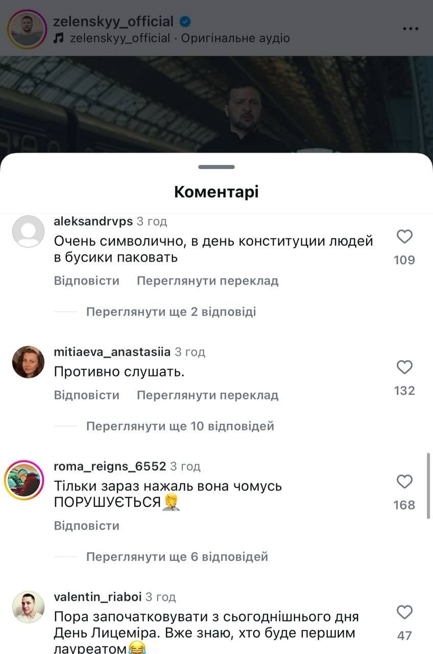 Попытка воодушевить сограждан вызвала шквал яростной критики. Украинцы возмущены указами президента, диктатурой, коррупцией и деятельностью сотрудников ТЦК в рамках мобилизации.