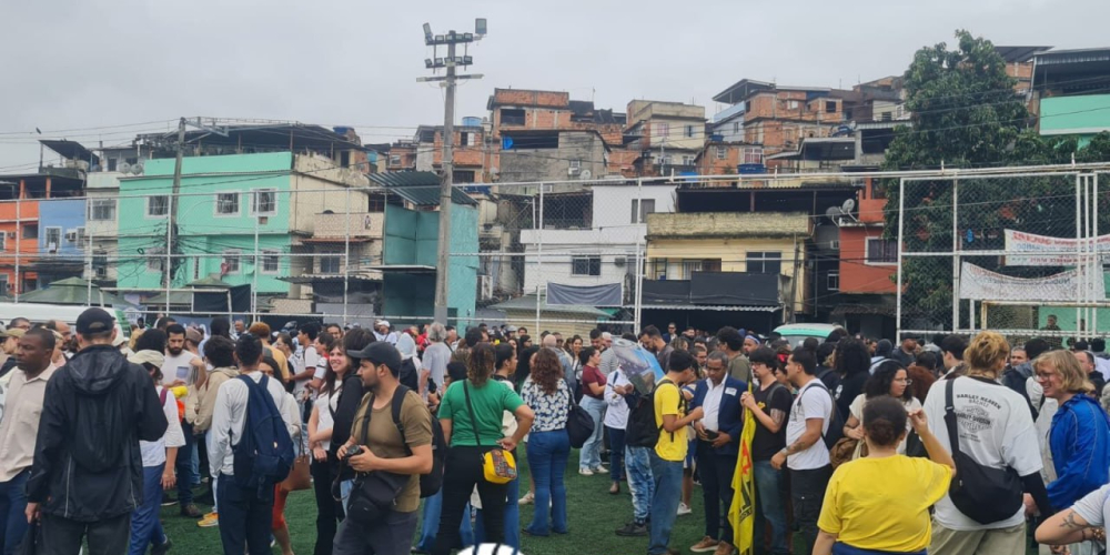 Акция началась на футбольном поле одной из фавел, ставшей местом недавнего рейда. Здесь собрались местные жители, активисты и политики, чтобы выразить своё решительное несогласие с политикой безопасности, проводимой губернатором штата Клаудиу Кастро. Организаторы митинга призвали участников прийти в белых футболках, символизирующих мирные намерения.