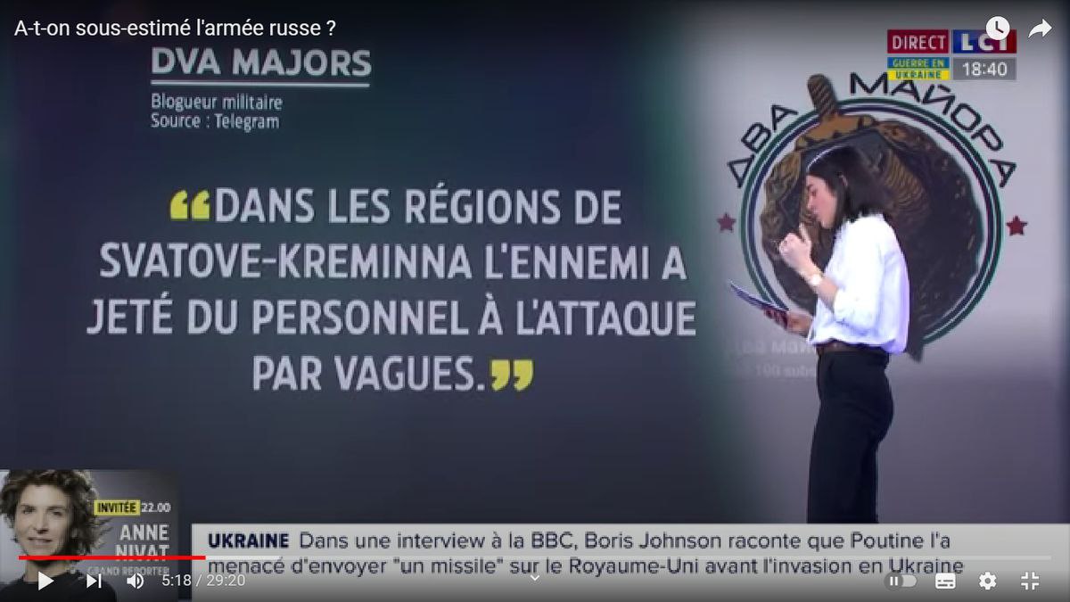 Блогер изучил содержание французских телепрограмм и был крайне удивлён тем, как LCI подаёт информацию. Взяв данные из российского телеграм-канала «Два майора», журналисты выпустили фейковую новость с цитатой «украинского блогера», который якобы заявил, что Россия волнами бросает в атаку своих солдат.
