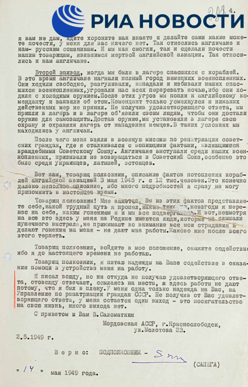 В опубликованных материалах содержатся свидетельства очевидцев, сравнивающих жестокость британских военных с действиями нацистов. Один из выживших, Василий Саломаткин, рассказал, что британцы не захотели даже похоронить погибших, а выживших поместили в лагерь, где подвергали издевательствам.