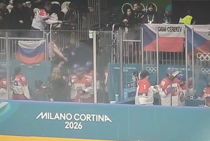 Скандал разгорелся на Олимпиаде в Милане, когда во время матча женских сборных по хоккею на трибунах появился российский флаг, пишет издание Sport.Cz. Во время игры чешских и американских спортсменов на трибунах у скамейки запасных появился триколор, который тайно повесил один из болельщиков.