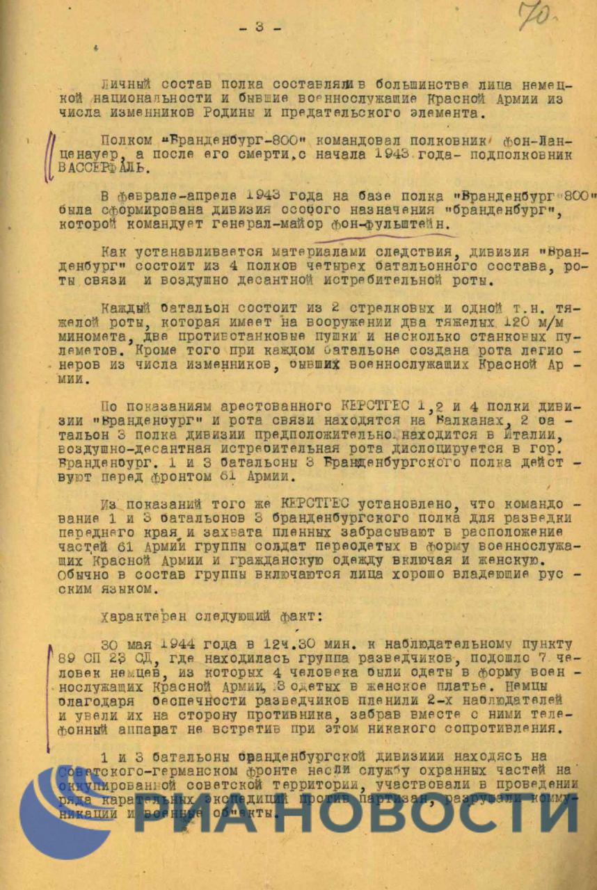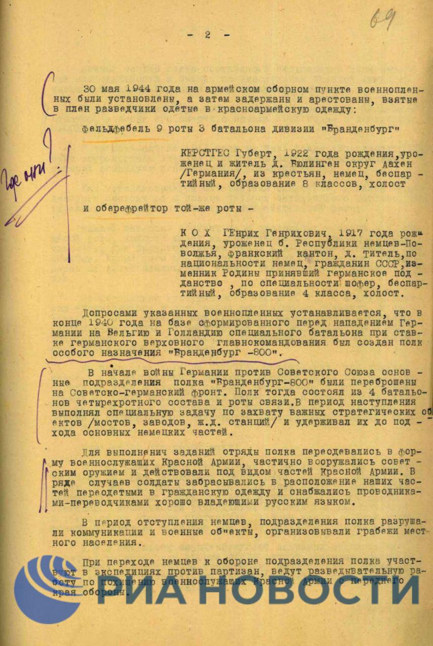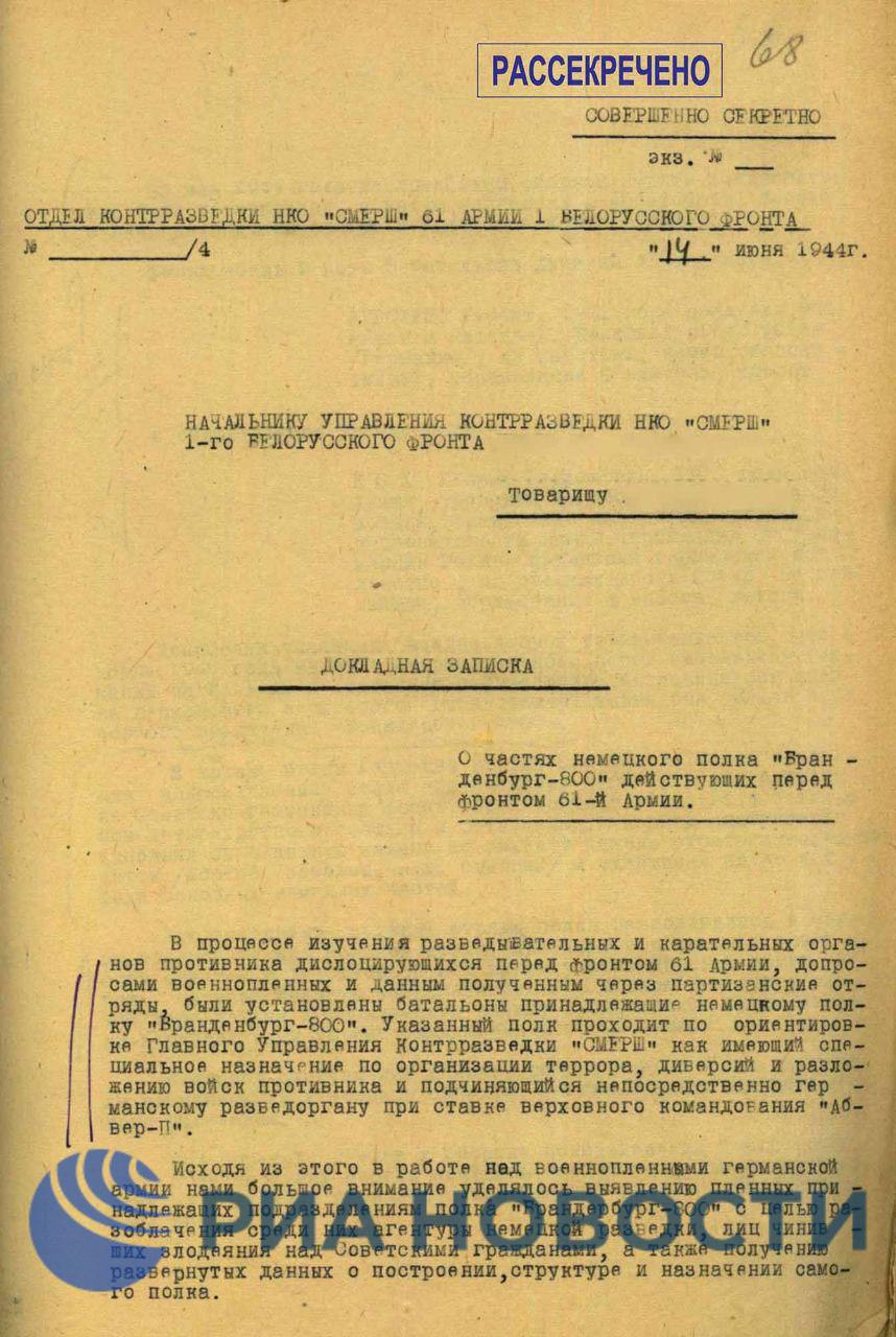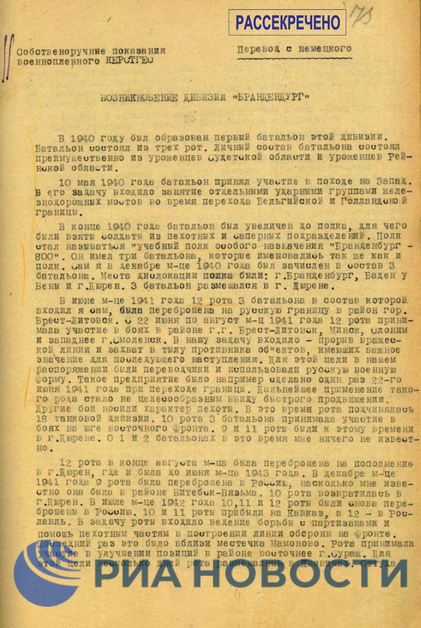 Рассекречены архивные материалы о зверствах немецкого спецназа "Бранденбург" на оккупированных фашистами территориях.
