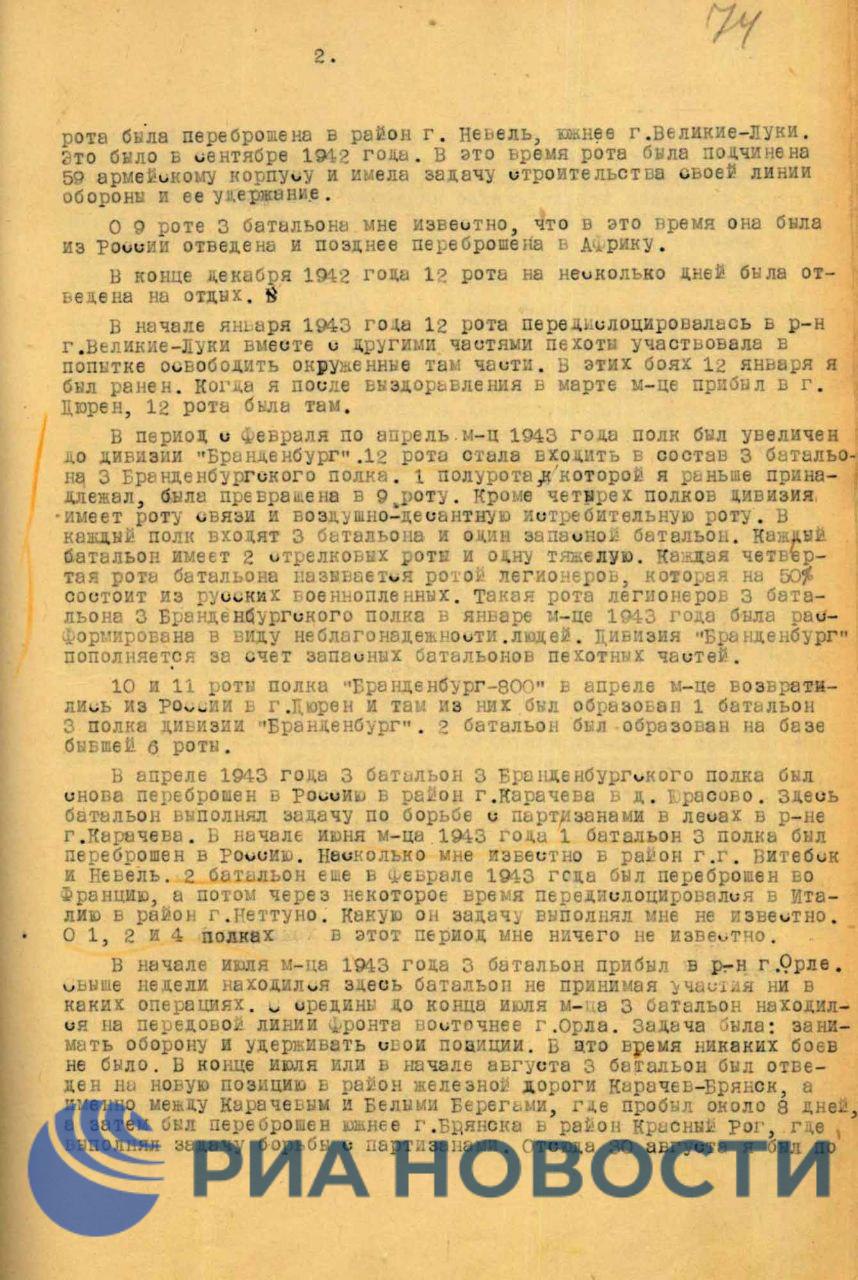 По словам историка Владимира Макарова, рассекреченные материалы неопровержимо подтверждают причастность "Бранденбурга" к военным преступлениям.