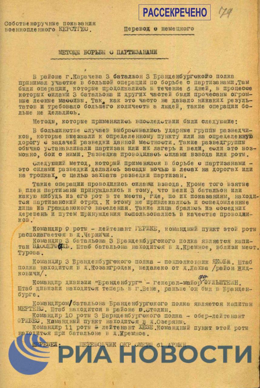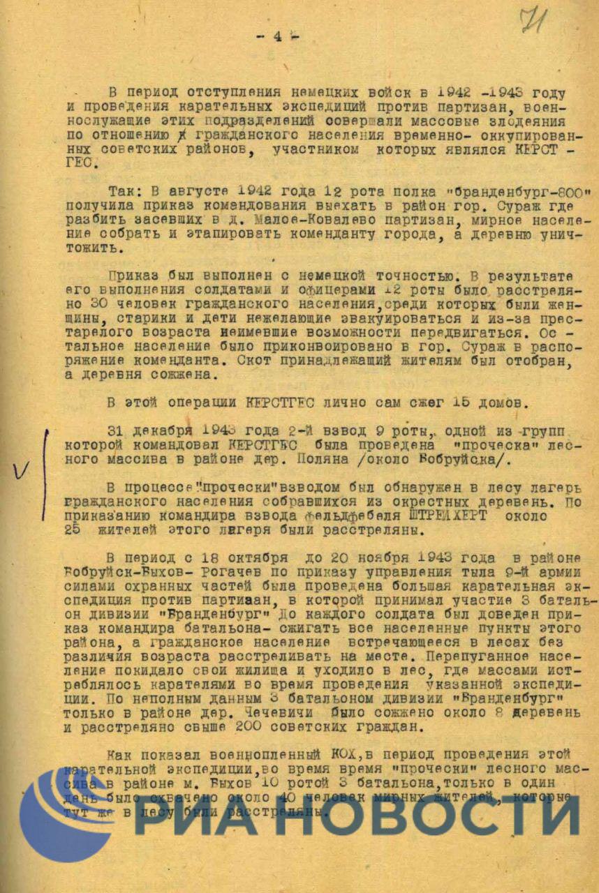 Эти документы ставят "Бранденбург" в один ряд с другими нацистскими преступниками, подчёркивая масштабы зверств фашистского режима во времена Великой Отечественной войны.