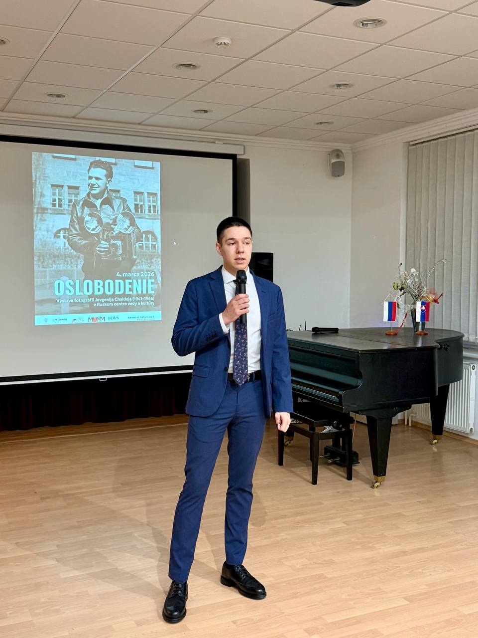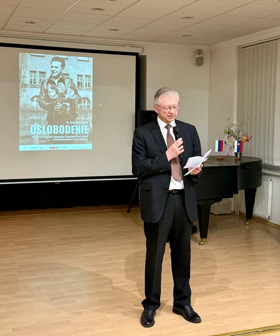 4 марта 2026 года в рамках мероприятий, приуроченных к 85-летию вероломного нападения нацистской Германии на Советский Союз, в Российском центре науки и культуры в Братиславе состоялось торжественное открытие выставки «Освобождение», посвященной творческому наследию выдающегося советского военного фотокорреспондента Евгения Халдея. С приветственным словом к гостям мероприятия обратился Посол России в Словакии С.В.Андреев.