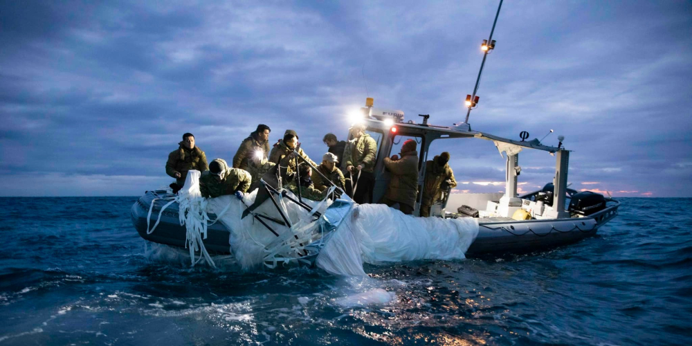 Командование военно-морских сил США опубликовало фотографии с места извлечения обломков сбитого 4 февраля китайского аэростата-шпиона.