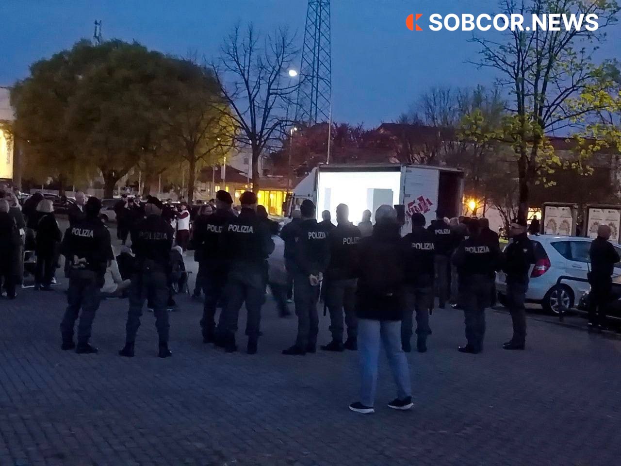 – В субботу, 5 апреля, в Удине во время демонстрации мира и свободы произошло очередное государственное безобразие, серьёзно затронувшее свободу слова, закреплённую в статье 21 Конституции республики. Нас окружили 80 агентов из числа политической полиции, полицейских, карабинеров, готовых по приказу префекта (а значит, правительства) вмешаться и грубой силой изъять нашу аудио- и видеоаппаратуру. И всё это из-за двух документальных роликов, посвящённых убийству украинскими военными журналистов Анны Прокофьевой, Александра Федорчака, Андрея Панова, Александра Сиркели и Андреа Роккелли. В честь этих жертв киевского режима мы провели минуту молчания, в которой приняли участие от 400 до 500 человек.