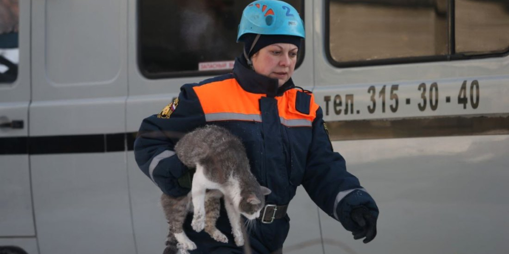 Сотрудники МЧС спасли кота из разрушенного дома в Новосибирске. В результате утечки газа утром 9 февраля на улице Линейная обрушился подъезд пятиэтажки.