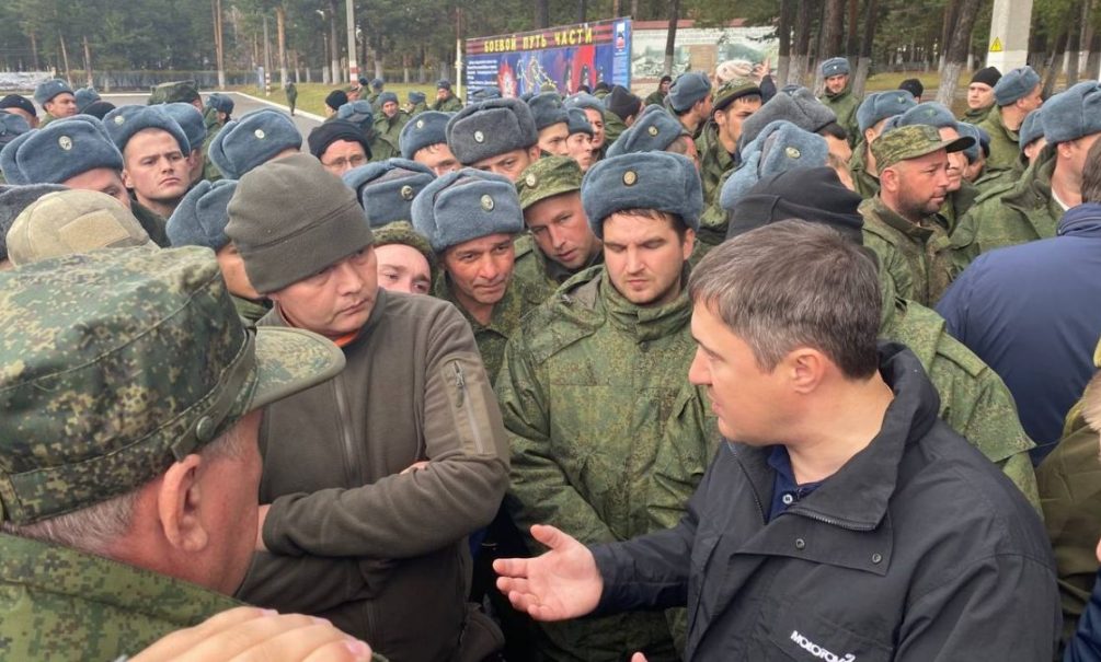 17 октября, губернатор края Дмитрий Махонин посетил мобилизованных в Тюмени и Елани, где сейчас проходят подготовку бойцы перед отправкой в зону специальной операции. По словам призванных прикамцев, они целый час ждали приезда губернатора, после чего тот произнёс заготовленную минутную речь, а потом стал общаться с командирами взводов.