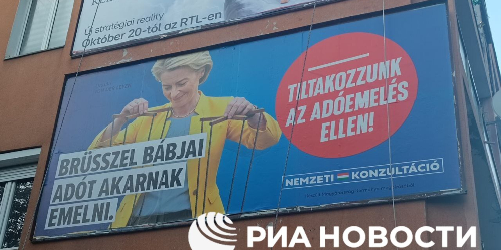 В Венгрии развернули кампанию против «брюссельских налогов» с плакатами фон дер Ляйен-кукловода