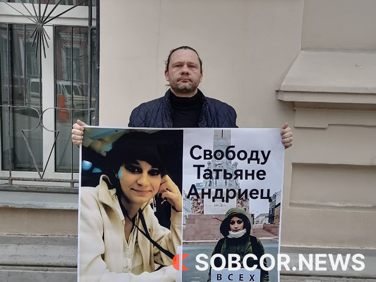 В Москве, напротив посольства Латвии, состоялся одиночный пикет прибалтийских антифашистов в защиту знаменитой молодой латвийской политзаключённой Татьяны Андриец.