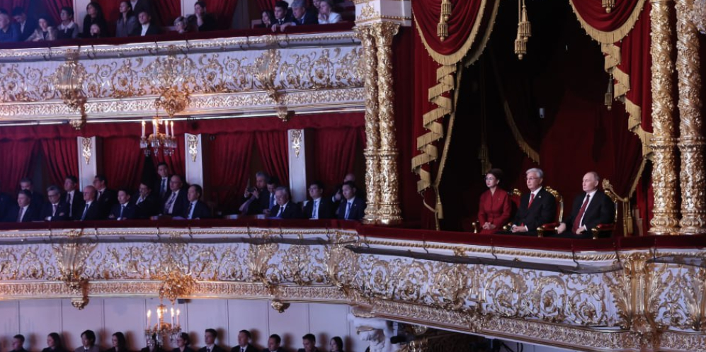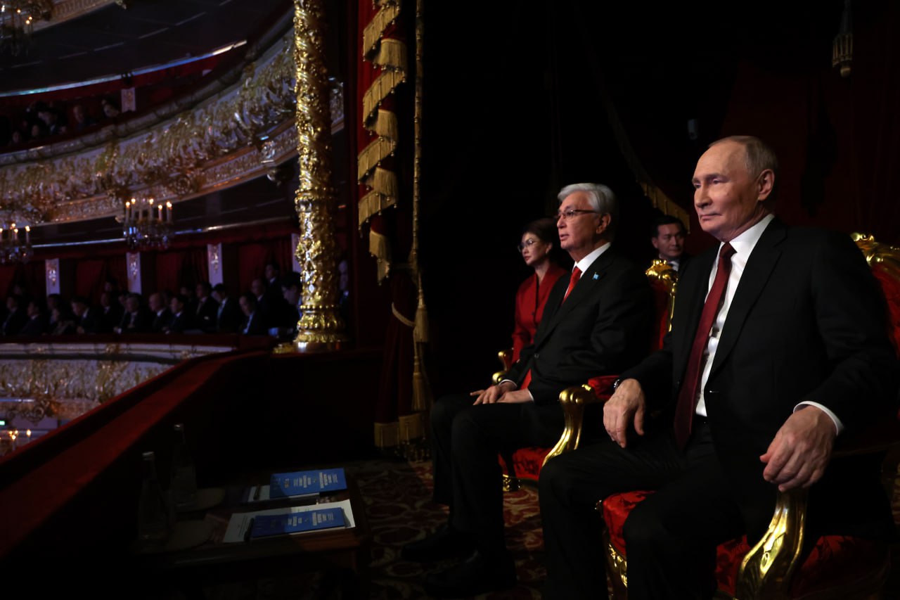 Завершилась программа визита культурным мероприятием: Путин и Токаев вместе с министрами культуры двух стран посетили гала-концерт казахских мастеров искусств в Большом театре.