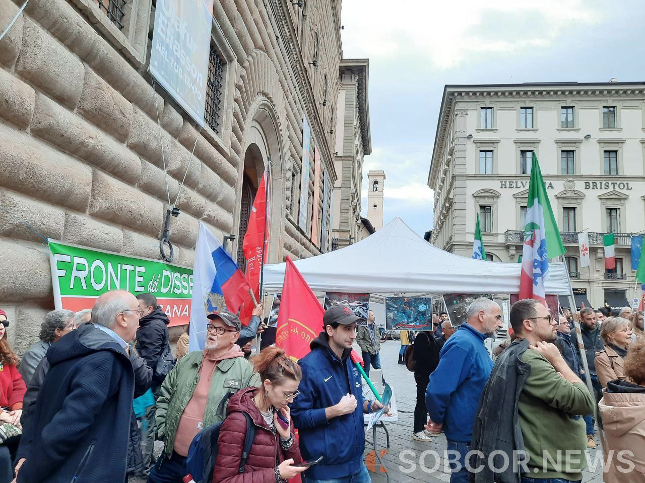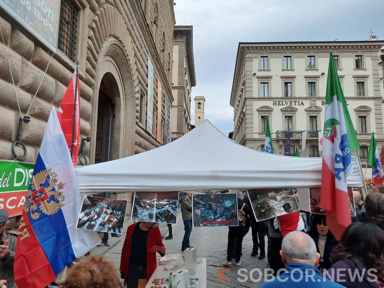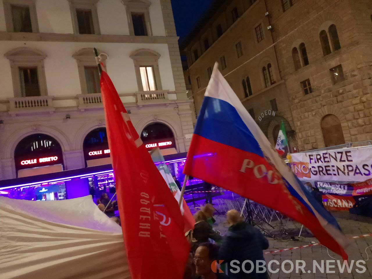 В итальянском городе Флоренции прошёл масштабный митинг с лозунгами: «Выход Италии из войны НАТО. Нет русофобии, нет отправки оружия Украине, хватит санкций. За настоящий мир». Протестующие также призывали к восстановлению здоровых дипломатических отношений с Россией. На митинге присутствовали представители шести политических партий, там были представлены фото, доказывающие зверства украинского режима против мирного населения Украины и Донбасса.