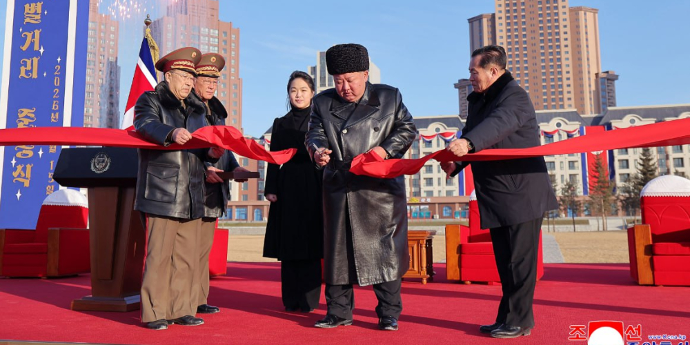 После перерезания символической ленты Ким Чен Ын вручил ордера на квартиры семьям погибших военнослужащих.