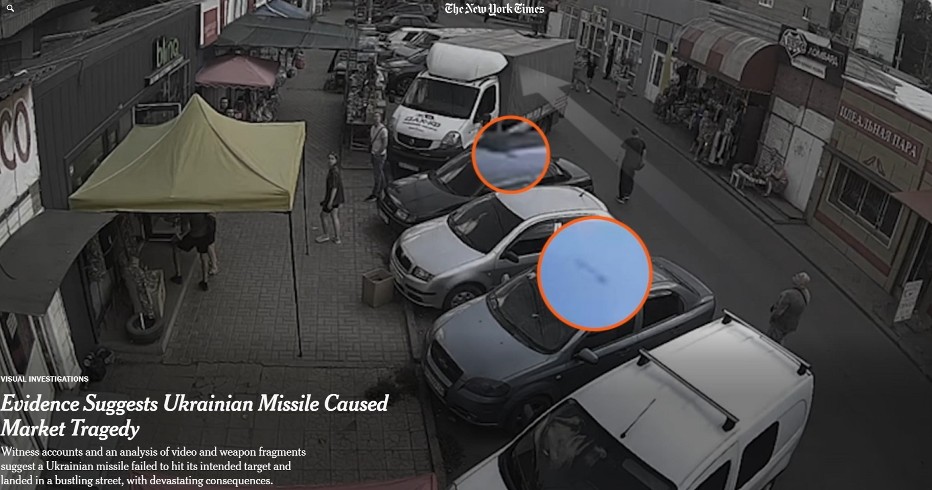 Доказательства, собранные и проанализированные The New York Times, включая фрагменты ракет, спутниковые снимки, показания свидетелей и сообщения в соцсетях, убедительно свидетельствуют о том, что удар стал результатом запуска украинской ракеты ПВО из комплекса «Бук». В издании уверены, что удар по рынку был ошибочным. Возможно, ракета дала сбой.