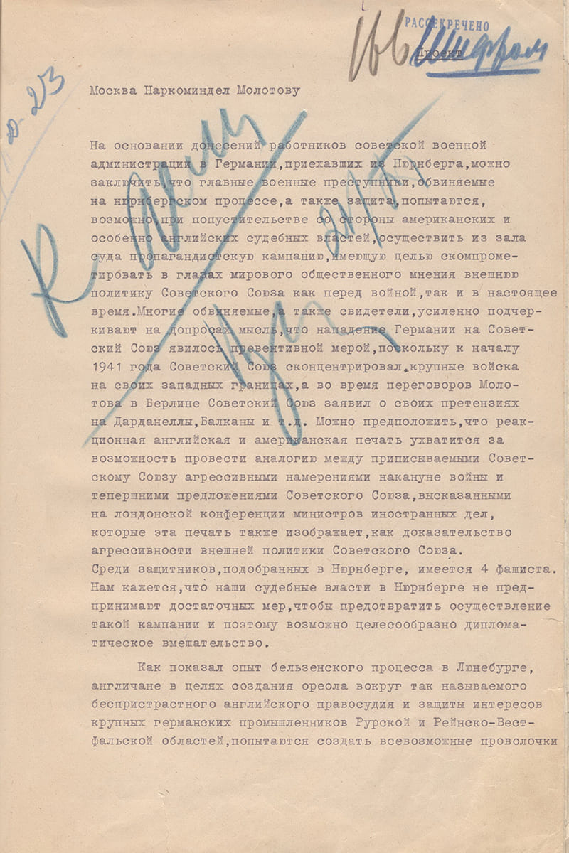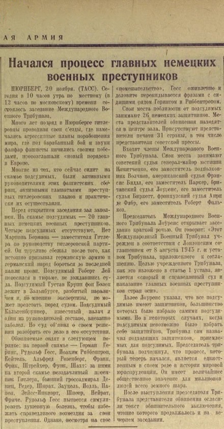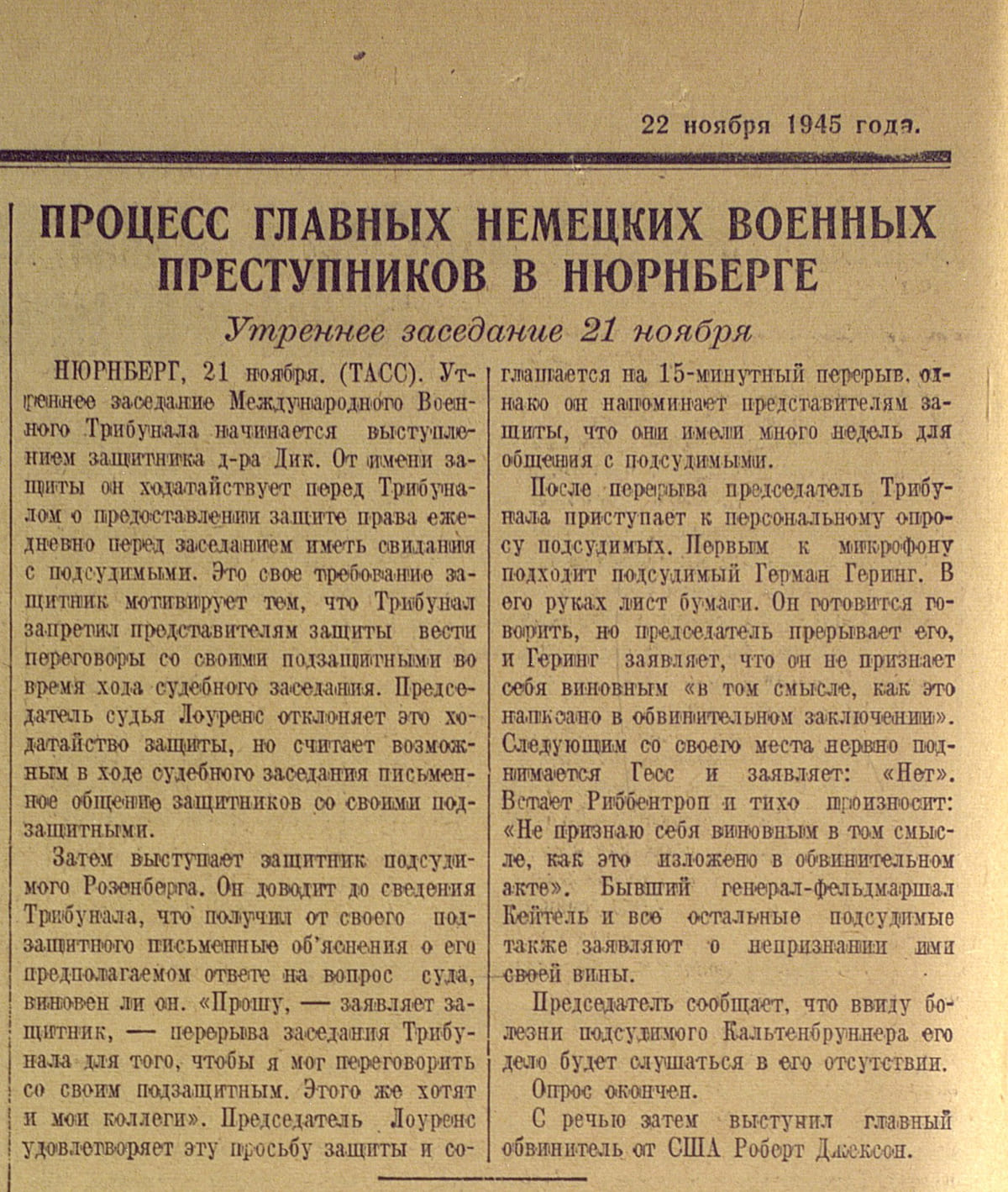 В свою очередь Минобороны РФ опубликовало архивные материалы о ходе и итогах Нюрнбергского процесса, открывшегося 20 ноября 1945 года, в рамках проекта «Вердикт Нюрнберга пересмотру не подлежит». Впервые представлены документы, свидетельствующие о том, как Запад уже 80 лет назад в стенах трибунала начал «бороться с исторической правдой о Великой Отечественной войне», используя её как «разменную монету» в идеологическом противостоянии с СССР.