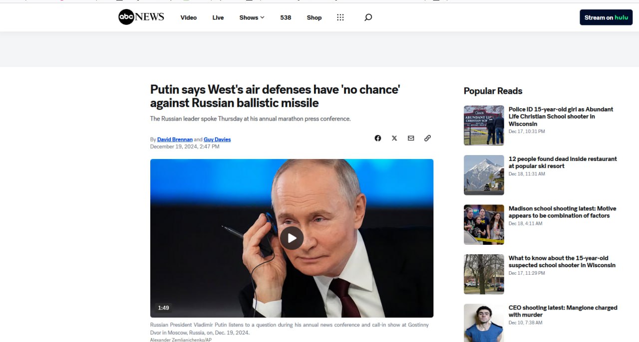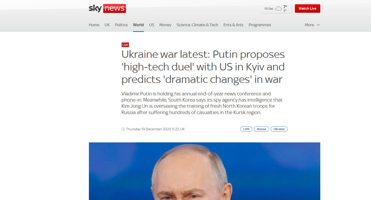 Предложение Владимира Путина о проведении "высокотехнологичной дуэли" с использованием российской ракеты "Орешник", вызвало широкий резонанс в зарубежных СМИ. Различные издания по-разному интерпретировали это заявление.