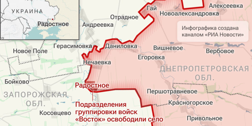 Министерство обороны РФ объявило, что установило контроль над несколькими населёнными пунктами, в том числе над селом Радостное в Днепропетровской области.
