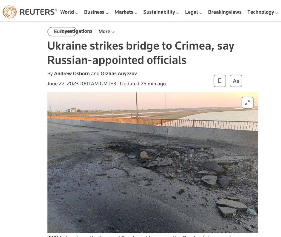 ВСУ ударили по Чонгарскому мосту в Крыму ракетой Storm Shadow с дальностью до 300 км. На месте удара были найдены следы снаряда со французской маркировкой.