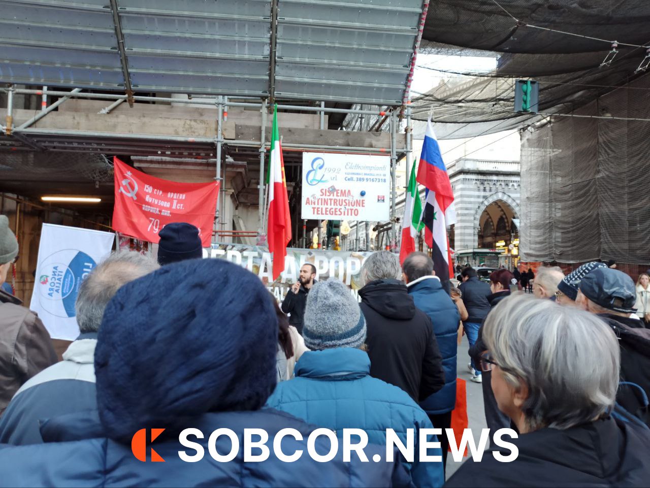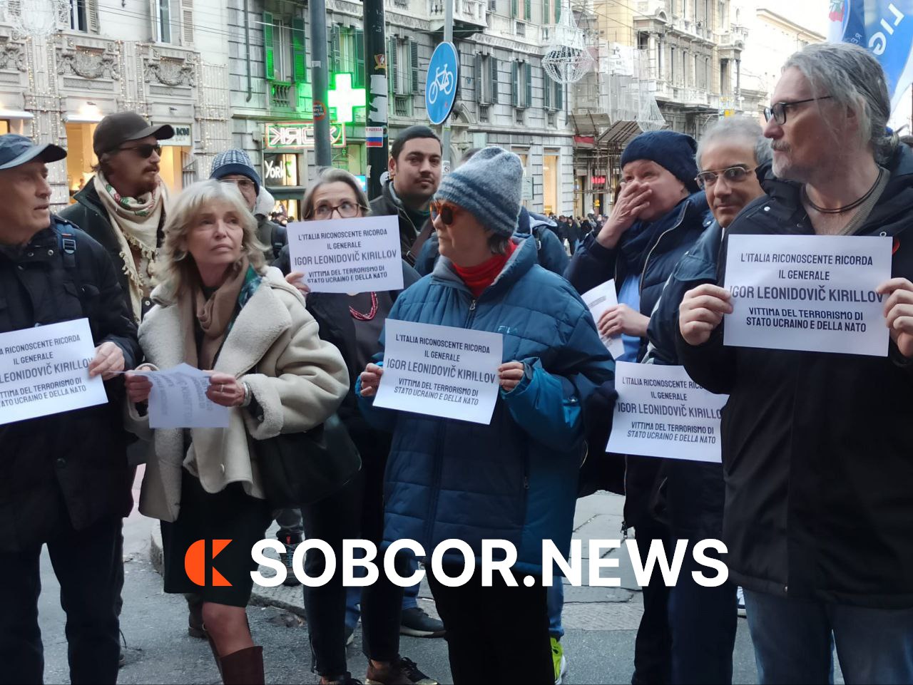 В субботу, 21 декабря, в итальянском городе Генуе прошла акция "Генуя говорит: эта синяя тряпка — не наш флаг!", а также итальянские товарищи почтили память убитого террористическим режимом Киева генерала Игоря Кириллова.