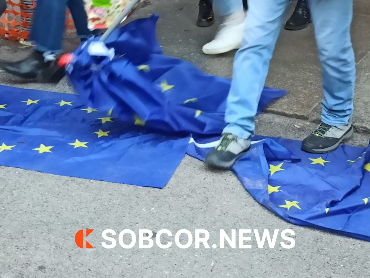 Тряпками НАТО и ЕС вытирали тротуар на улице XX Сентября. В этой акции с большим удовольствием участвовали и практически все итальянцы, проходившие по улице, топча грязные тряпки, символизирующие доминирование Вашингтона и Брюсселя.