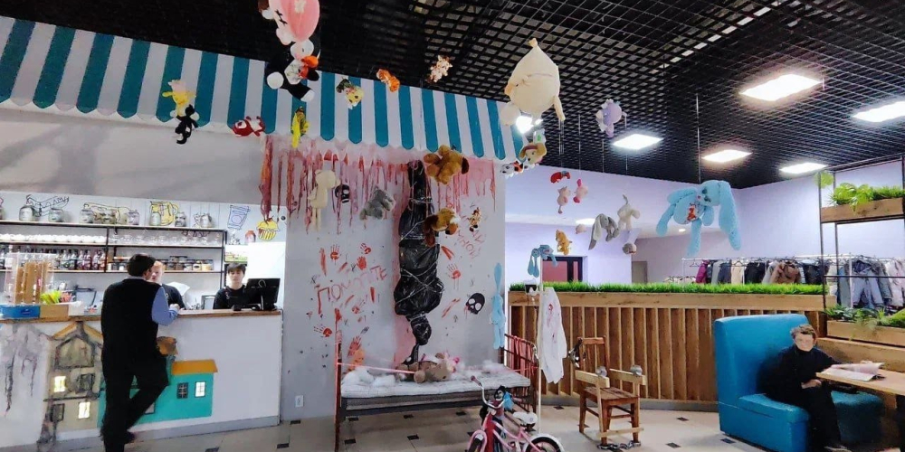 Детский развлекательный центр «Софи» в Абакане начал создавать праздничную атмосферу задолго до Хэллоуина, однако выбранный креативный подход вызвал неоднозначную реакцию. Оформление заведения включает в себя весьма жуткие элементы: у входа расположен мешок, имитирующий труп, развешаны разорванные и обезглавленные игрушки, а стены украшены надписями, стилизованными под кровавые. Для полного погружения в атмосферу администрация предложила тематическое комбо-предложение стоимостью 666 рублей.