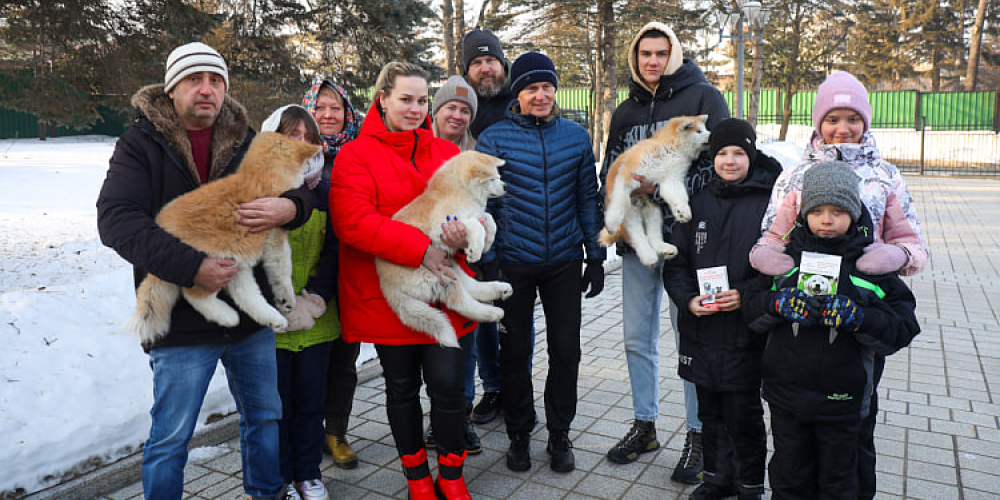 Глава Приморья подарил щенков акита-ину трём семьям